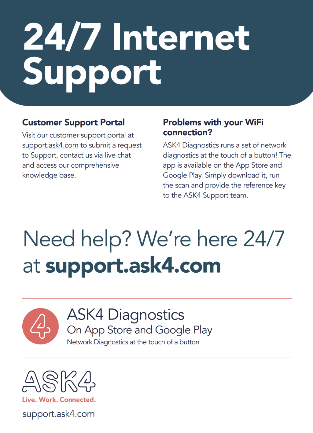 To assist our customers in signing up and to help them get the most out of our service, we can provide a variety of digital materials for your accommodation. If you would like any of the leaflets or posters below for your site, please contact your Client Service Manager, who will be happy to assist you with your request.